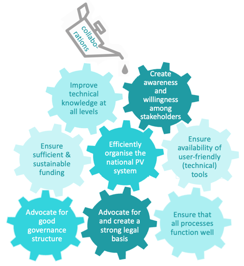 For a pharmacovigilance system to thrive, a dedicated pharmacovigilance policy and set of laws and regulations regarding pharmacovigilance is needed. A national pharmacovigilance system should have a national pharmacovigilance centre to provide a focus for implementation and enforcement of this legislation. Enforcement also requires prioritised sufficient and sustainable funding for pharmacovigilance operations as well as dedicated personnel, and active support from national governments. The PAVIA project worked on strengthening pharmacovigilance policies and funding models in the four participating countries and used the results of the project to develop materials that other countries may use to strengthen their pharmacovigilance systems.