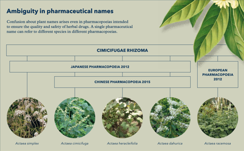 Plants and the drugs derived from them are referred to using common, pharmaceutical or scientific names. Common names like ‘ginseng’ are part of everyday speech; they vary from place to place and their meanings may change over time. A plant called ‘yarrow’ in some places is referred to as ‘millefeuille’ or ‘woundwort’ elsewhere (synonyms). A name like ‘bluebell’ may refer to one species in England and another in Scotland (homonyms). The multiplicity of names and their inconsistent use across countries and disciplines cause considerable confusion.